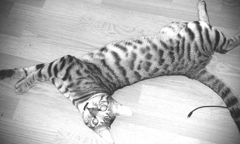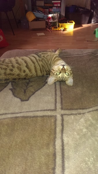 Zeltaini brūns kažoks ar melniem plankumiem.
