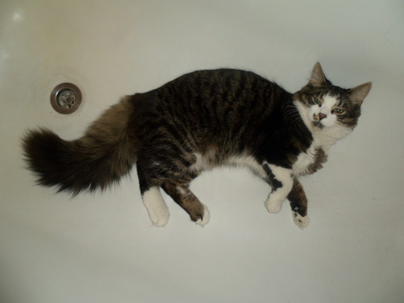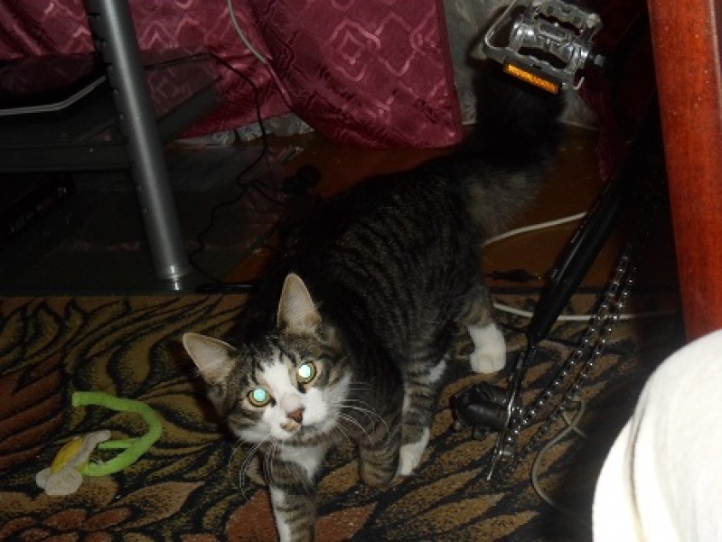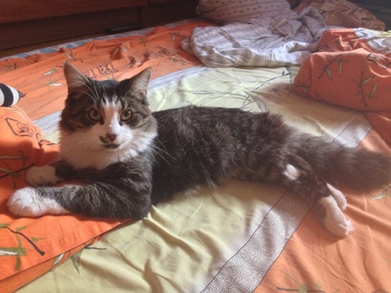 Melns, ar pūkainu asti, baltu deguntiņu, un ar plankumiņu uz deguna kreisās puses, sauc Busjiks! Lūgums palīdzēt!