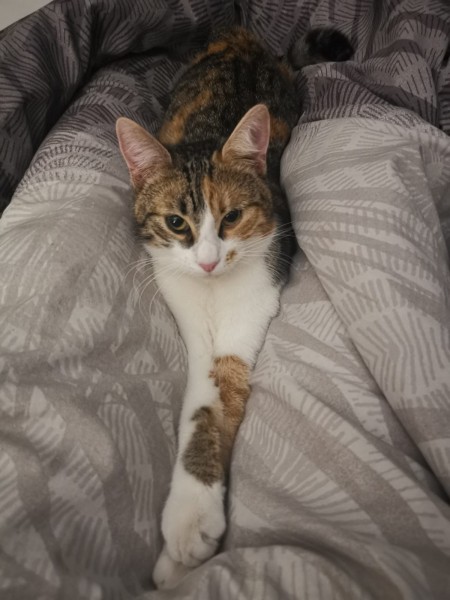 Trīskrāsaina kaķenīte vārdā Lote. Draudzīga. Pazudusi Bieriņu rajonā, Rīgā.