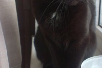 Pazudusi melna kaķene. Uz kakla un starp kājām balti spalvu kušķīši. Saslimusi (nieru mazspēja), izskatās izkāmējusi, iespējams, slimības dēļ pasliktināta redze. Atsaucas uz vārdu Minna.