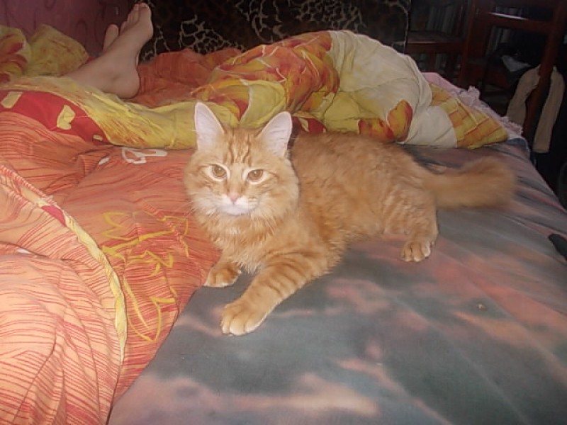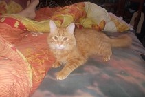persikkrasas garspalvains, loti miligs runcis. Atsaucas uz vardu Puucinnss.