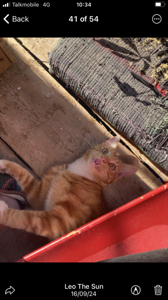 Ruds jauns kaķis ar kaka siksnu. Draudzīgs. Atsaucas uz vārdu Feliks. Atradējam piedāvāju atalgojumu.