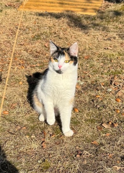 Maza auguma kaķenīte, trīskrāsu kažoks, rozā deguntiņš. Ikdienā staigā pa sētu un piemājas mežu; draudzīga, taču piesardzīga no svešiniekiem. Naktī izgāja no mājām un neatgriezās.