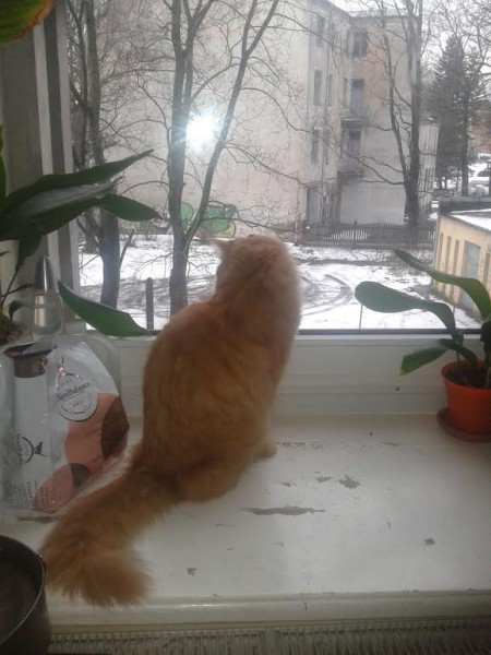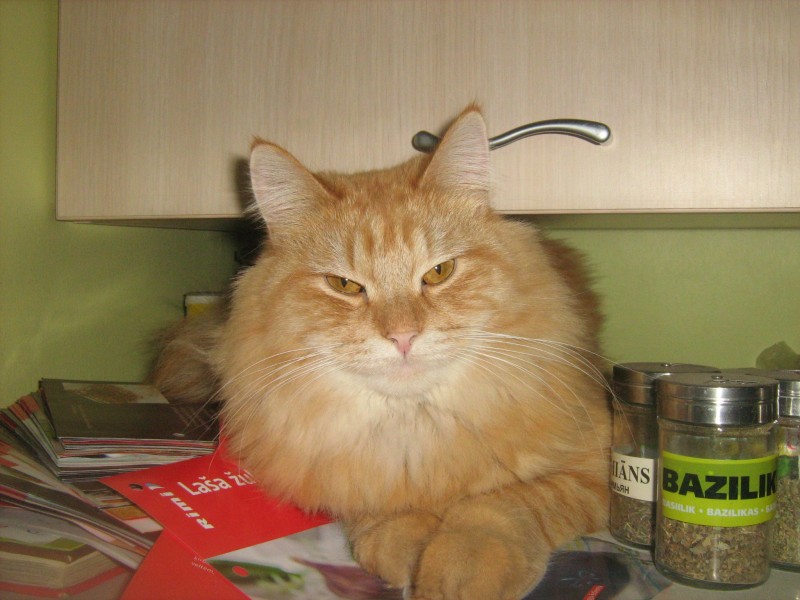 Garspalvains ruds kaķis ar nedaudz baltu purniņu un vēderu. Izkritis pa logu uz Slokas ielas un apmaldījies Kalnciema ielas, Mākslu vidusskolas un Vasaras ielas tuvumā. 14 gadus vecs mājas kaķītis.