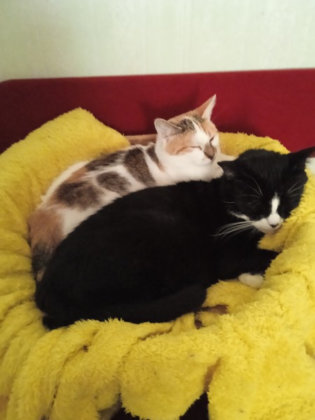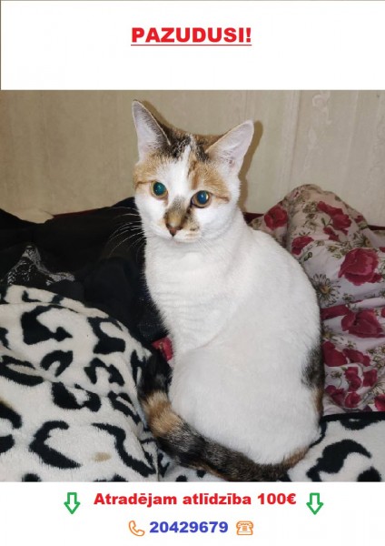 Meitenīte Minna. Vairāk baltā krāsā, ir rudi un brūni pleķīši, un melni radziņi uz galvas. Loti maziņa un bailīga. Iespējams, ka kaut kur paslēpusies.
