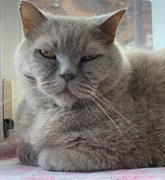Peleka krasa. Kaķis gados, apaļigs. Labā auss bišķi saplesta. Atsaucas uz Bonifacijs/Boņa.