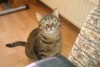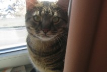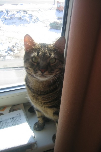 svītrains mājas kaķis, pazuda no mašīnas pēc auto avārijas