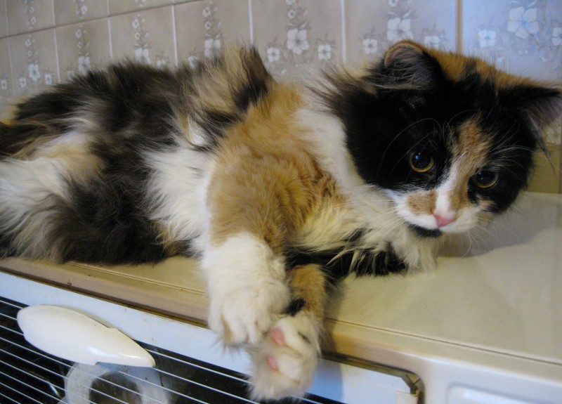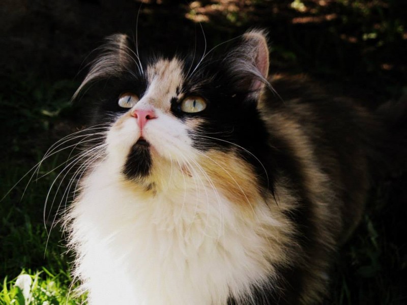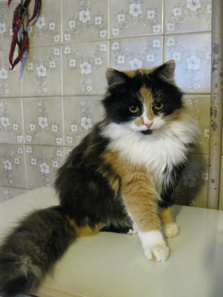 Kaķenīte azudusi Lielvārdē. Trīskrāsaina, neliela auguma, ļoti mīlīga. Viņai ir balta, gaismu atstarojoša siksniņa.