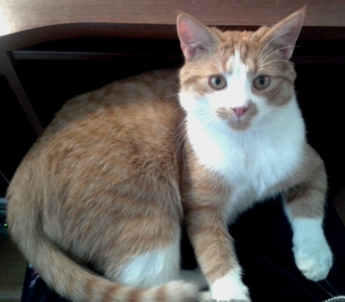 Ruds, gadu vecs, balts deguns, krūtis, ķepas, astes gals, uz deguna ruds plankums (kā nosmērēta mute), ņaudēšanas vietā pīkst.