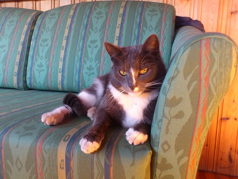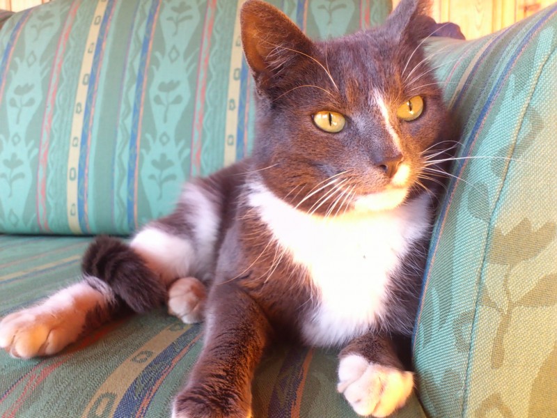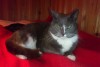 Pazudusi ster. kaķene-pelēkā kr. ar baltām:ķepām, kaklu un vēderu. Balta gara svītra iet no pieres līdz kreis. degunam un mazs balts plankums kreis. pusē zem baltās svītras, zaļas acis. Mīlīga bet bailīga. Aizgāja cet.vakarā un vēl nav atgriez.mājās.