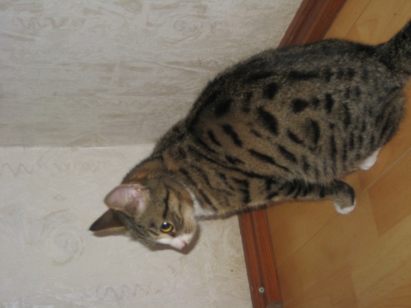Pazudis no 08.06.2014. Krāsas - pelēka, melna (plankumi un strīpas), baltas ķepiņas un pazodīte. Kaķīti sauc Leo.