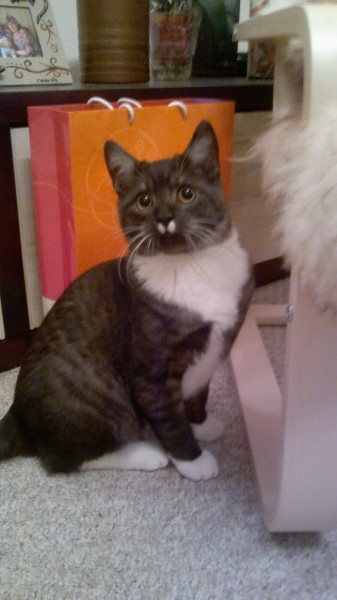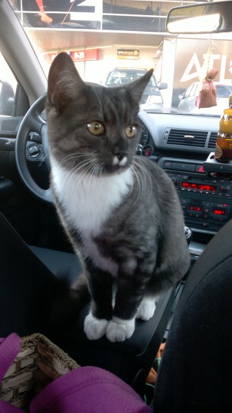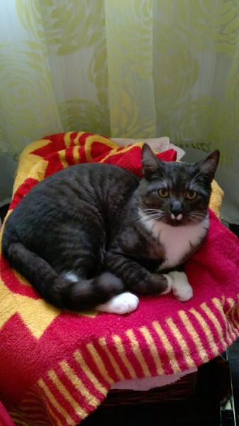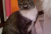Pelēki strīpains kaķis ar baltām ķepām un krādziņu, zem deguntiņa divi balti plakumiņi kā ūsiņas. Pēdējo reizi manīts 04.07.2014 Mārupē, pie Zeltrītu ielas 24 mājas.