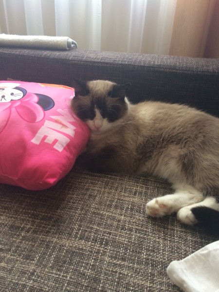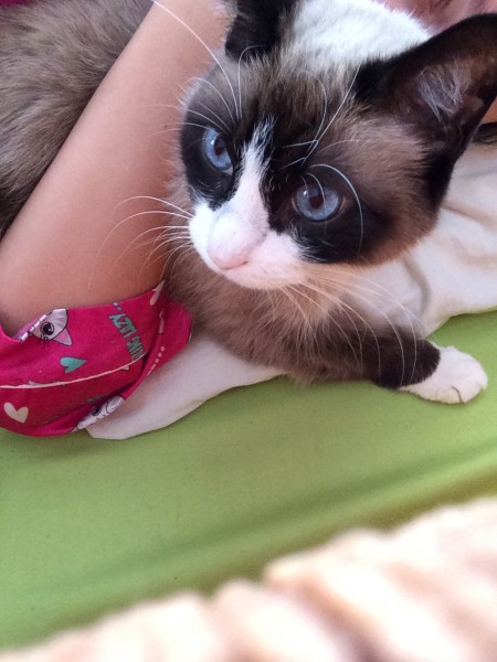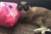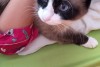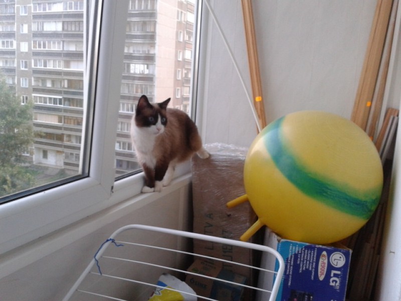 Kaķene, 8 gadi, zilas acis, balts purns, baltas ķepas, melna aste, pelēcīga/gaiši brūna nokrāsa. Atsaucas uz vārdu Tefa.