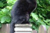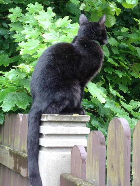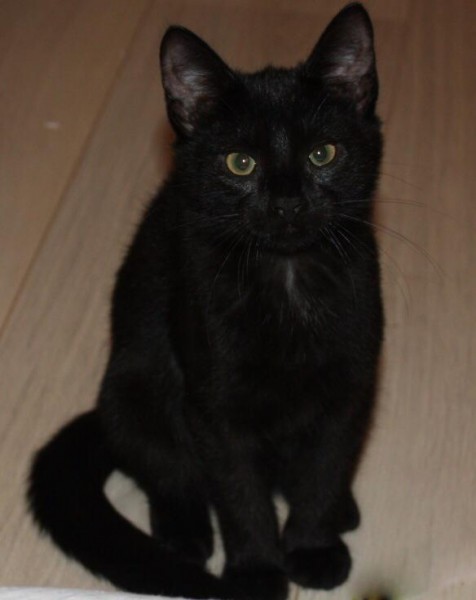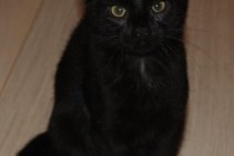 Bailīga, melna ar zaļu siksniņu ap kaklu!