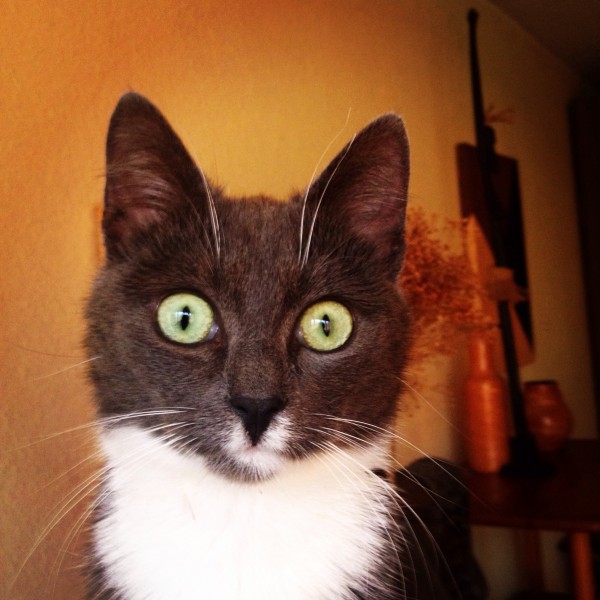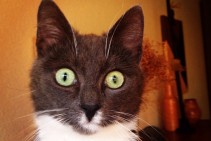 Pazudis kaķis. Ap kaklu tumši zaļa siksniņa.