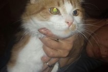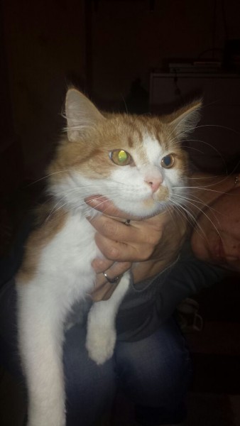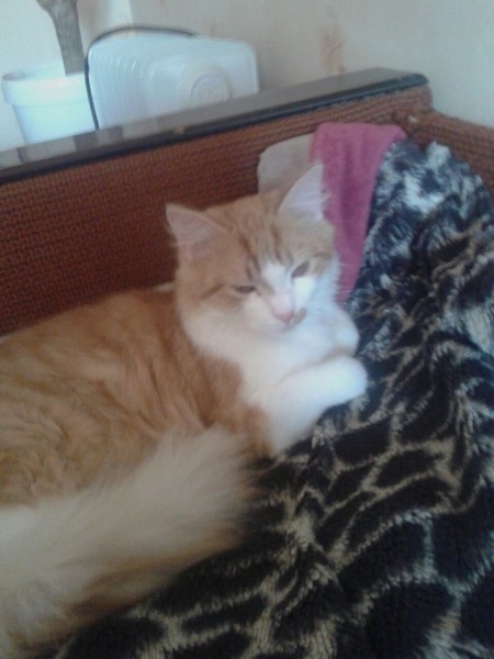 Jauns runčuks. Ruds ar baltu, garu spalvu, kuplu asti un rudu pleķīti uz purniņa.
