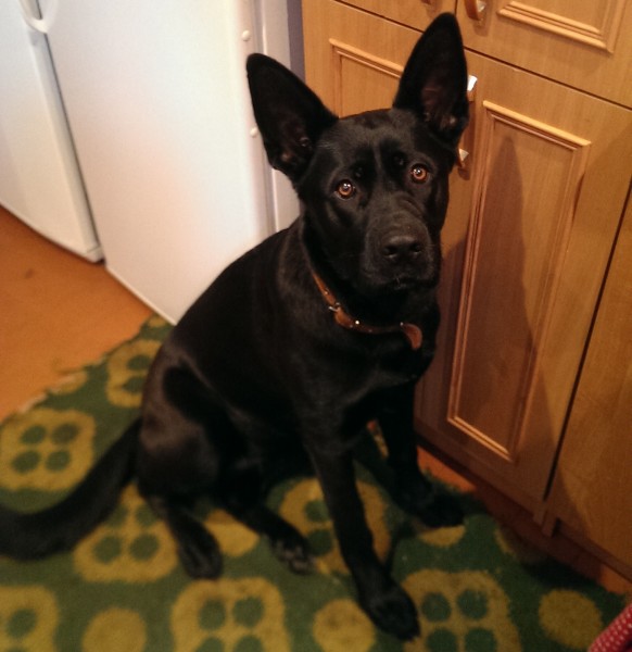 Cane corso krustota ar vilku, 1.2 gadu veca, ap kaklu gaiši brūna siksniņa, ļoti skaisti stāvošas ausis. Atsaucās uz vārdu Čita.