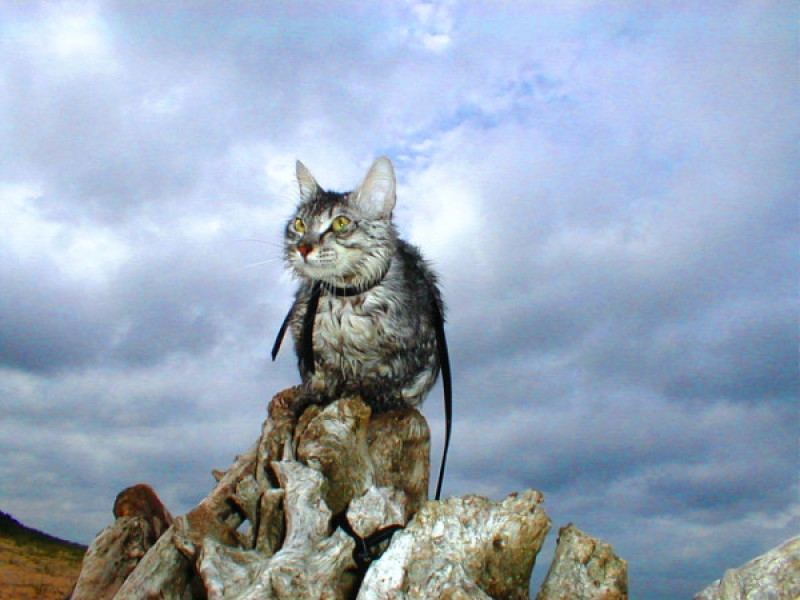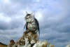 kuriļu bobteils-tēraudzilganpelēcīgs sudraba krāsas garspalvains runcis,lielas,zaļas mandeļveida acis,pagaras ausis,pakaļa kā zaķim,