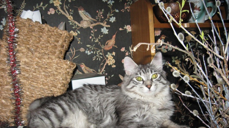 kuriļu bobteils(9 gadi)-tēraudzilganpelēcīgs sudraba krāsas garspalvains runcis,lielas,zaļas mandeļveida acis,pagaras ausis,pakaļa kā zaķim, īpašas pazīmes-astes vietā maza gredzenā sagriezta ļipa
