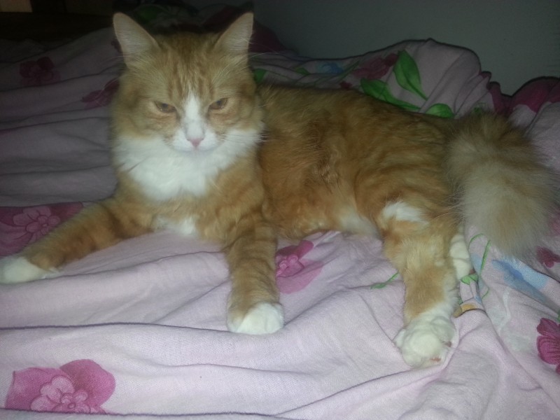 Pazudis ruds kaķis ar baltu krūtiņu un ķepiņām. Pazudis Rīgā Biķernieku ielā 26.07.2015