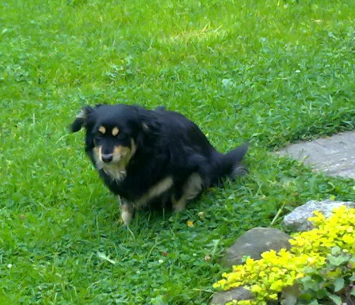 Melna kucīte ar brūnu pakrūti , purniņu un ķepiņām. Atsaucas uz vārdu Džīna. Tetovējums ausī Nr.0796. Pazuda no mājām 24.12.13. salūta laikā, Liepājā, Laumas rajonā.