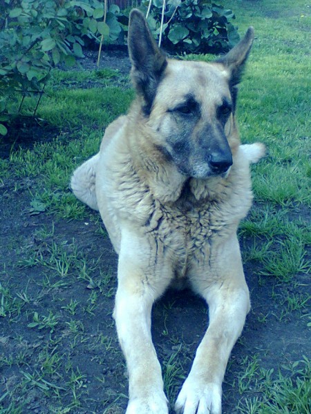 Lidzigs vilka sunim,dzeltena krasa ar kakla siksnu,izmuka no majam,miermiligs atsaucas uz vardu Dzeks.