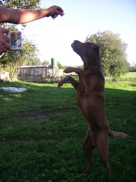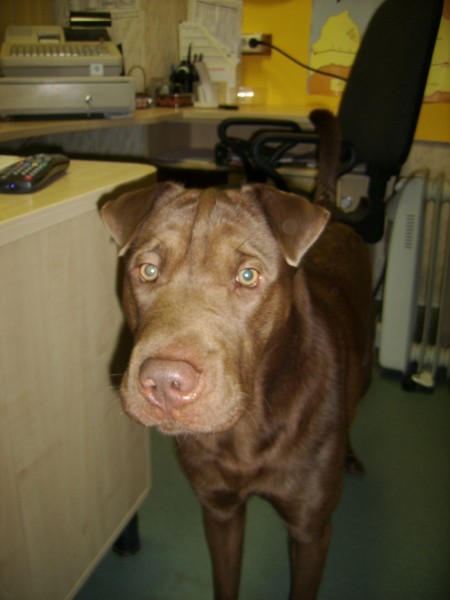 Brūnā krāsā, diezgan paliels, pie acīm ir rētas (bildēs nav redzamas). Ļoti mīļš un labsirdīgs, atsaucas uz vārdu Čoko!