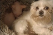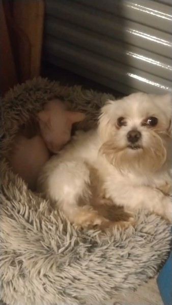 Pazudis mežā Ropažos, Maltas zīda suns, balts ar bēšiem pleķiem.