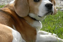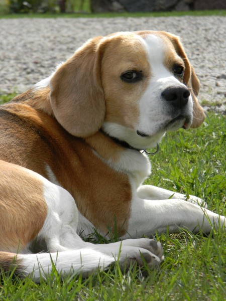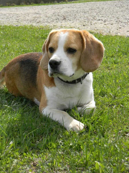 Trīskrāsu bīgls,pārsvarā brūnā krāsa. Vārds– Brando