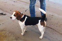 Bīgls pazuda mežā Latgalē, Rožupes pagasta Peivelišķos. Ir brūna kakla siksna.
