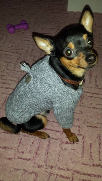 Īsspalvains melns krievu toiterjers ar gaiši brūnām uzacīm, purniņu un ķepiņām.
