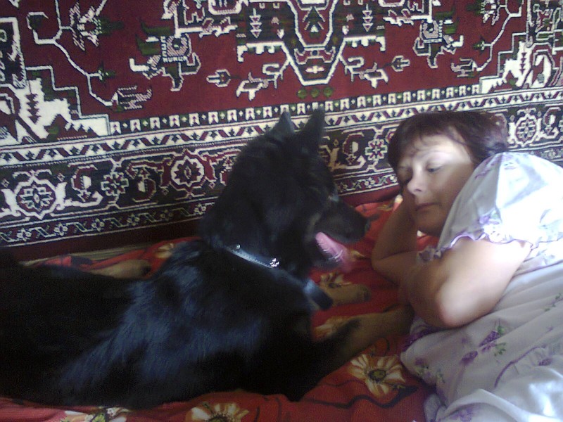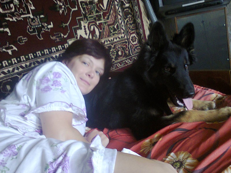 щенок овчарки с зеленым ошейником