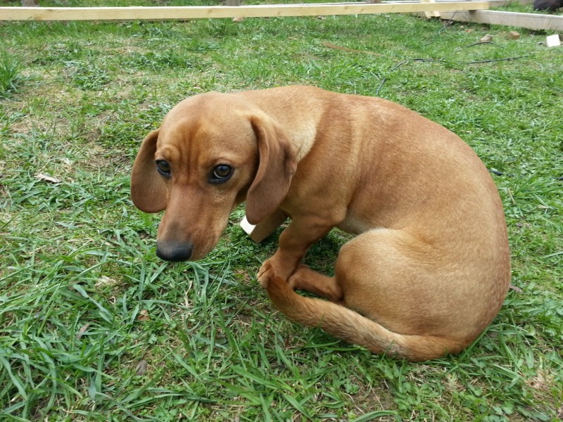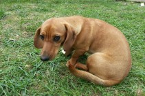 Gaiši brūns takša puika ,loti draudzigs .Atsaucās uz vārdu Hercogs