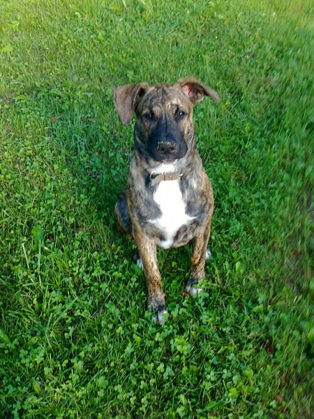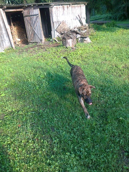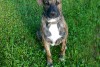 Buldoga un jauktena krustojums 46kg bruns ar melnam svitram uz kruutiim balts plankums melns purns