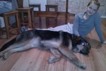 Tibetas mastifa un vilku sugas krustojuma kucīte,brūnā krāsā,atsaucas uz vārdu Roksa.Purniņš un ausis pēc mastifa.
