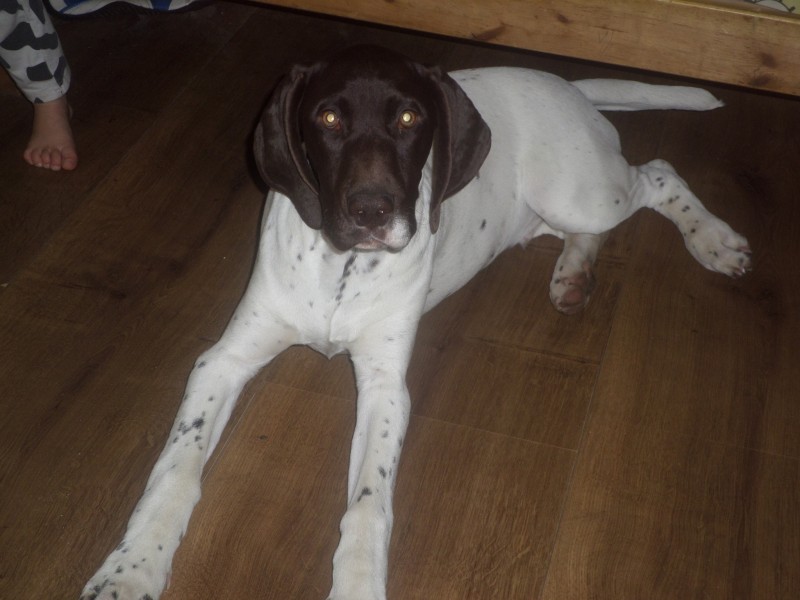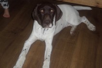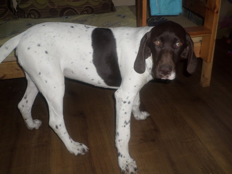 Pazudis Vacu isspalvainais putnu suns,videja auguma,balts ar bruniem plankumiem.Atsaucas uz vardu Kredo.