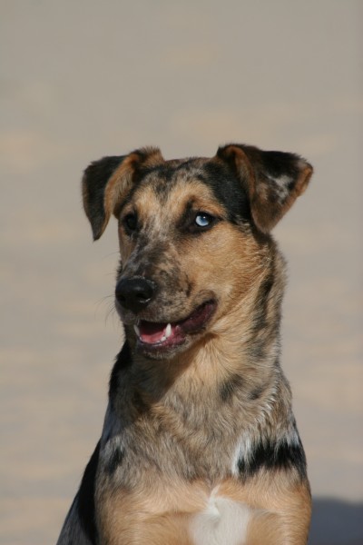 mamma Džemma raiba skat foto, kreisā actiņa puse zila, puse brūna, siksna melna 2daļīga; kucēni - 1)Tarra - ruda ar raibu - 2)Kleo - gaiši pelēka; siksniņas ar atstar.joslām 1)sarkanā 2)oranžā krāsā.