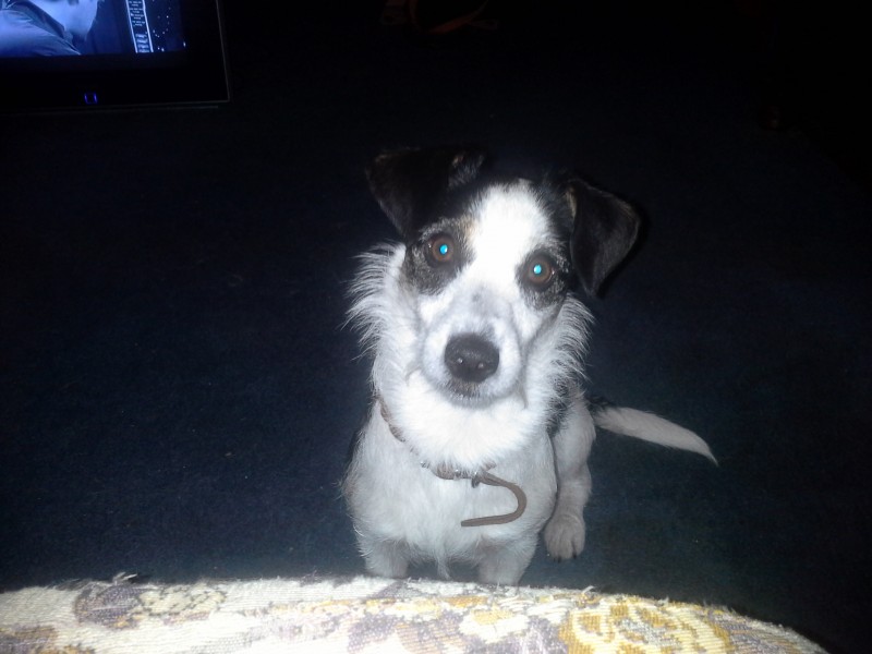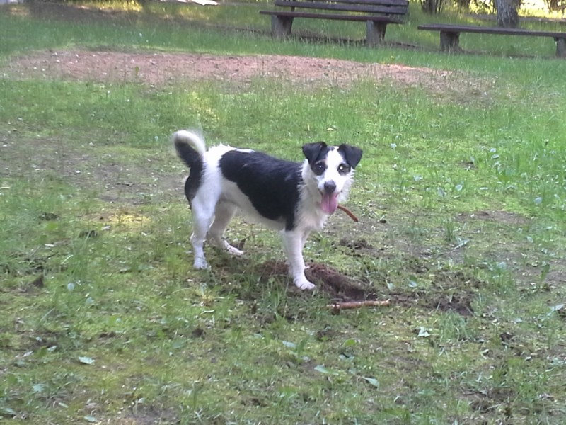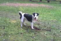 Kucīte ar neproporcionalu meln - baltu nokrasu,ap vienu no acim oranža spalva. Asa ispalvene ,bet ar lielu spalvu daudzumu. Ap kaklu brūna kaklasiksna(gals sagrauzts),balts pavadinš ar melnam ķepām. Iespejams ar svešu cilvēku.