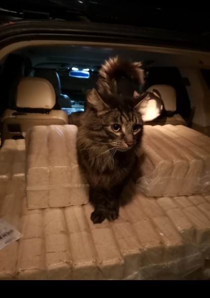 Liels kaķis, apmēram 8 kg, 5 ar pusi gadus vecs, līdzīgs meikūnam. Krāsa brūni pelēcīgi svītraina, gara spalva. Pazuda 11.februārī Rīgā, Zasulaukā, Tapešu un Elvīras ielas rajonā.
