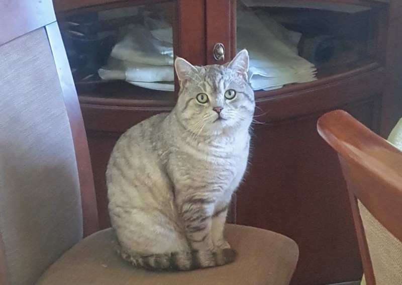 Pelēkstrīpains britu īsspalvainais runcis neagriezās no pastaigas 31.decembrī Kauguros.