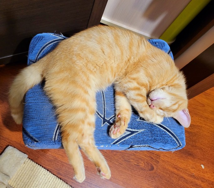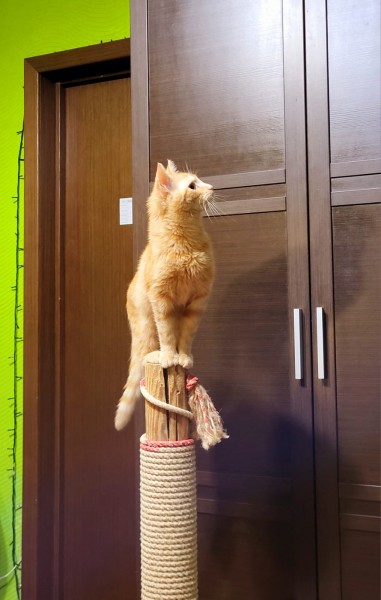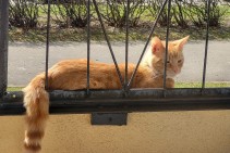 Ruds, slaids, īsspalvains, 9 mēnešus vecs, bailīgs kaķis (bez čipa, bez kakla siksniņas).