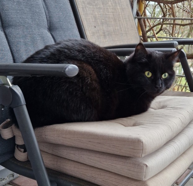 Melna, vidēji gara spalva. Uz krūtīm dažas baltas spalvas. Acis dzeltenas.