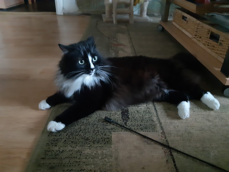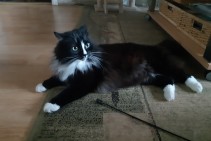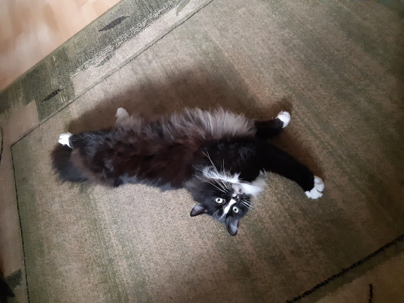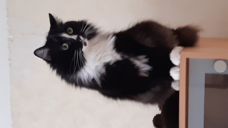 Istabas kaķis vārdā Meritis, nobijies, var nedoties rokās.