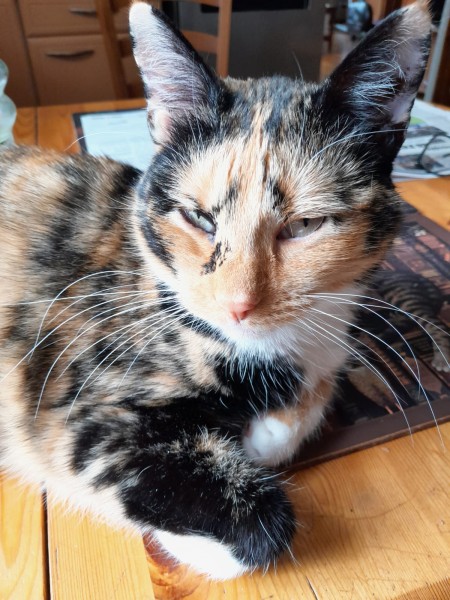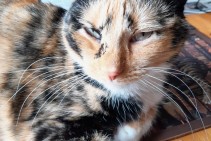 Trīskrāsu kaķenīte ar rudu purniņa nokrāsu. Dzīvo Marijas ielā – Mellužos. Parasti pastaigājas pa sētām uz Priežu ielas pusi.
