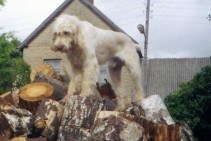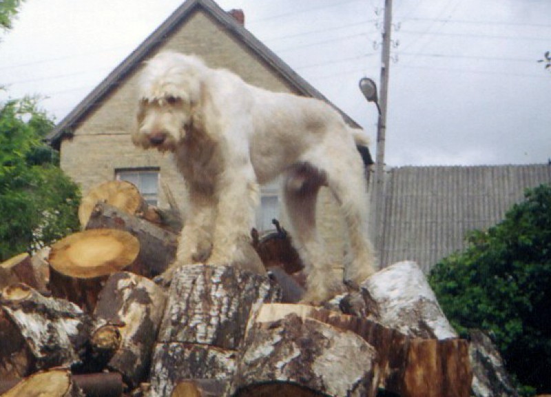 Liels, balts škirnes suns. Ir kaklasiksna, iekšpusē tel.Nr Klausa uz vārdu Karlo, bet ir piesardzīgs. Nav agresīvs. Nav piemērots dzīvei salā.