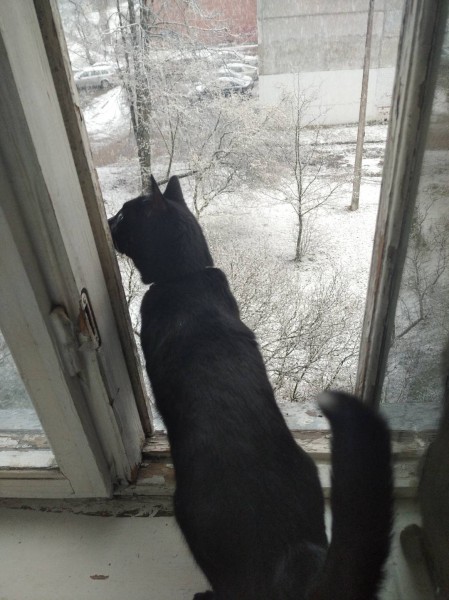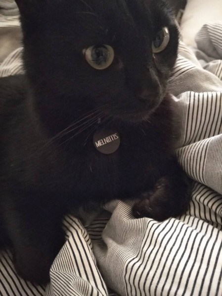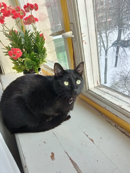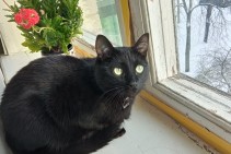 Vidēja miesas būves,runcis melns ar zaļaam aciim.