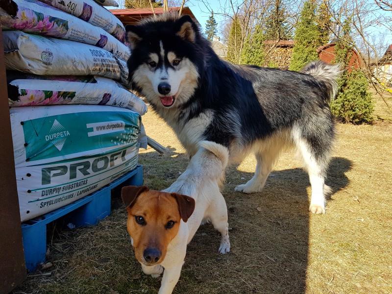 Pazuduši divi suņi viens Haskijs vārdā Vulfijs, otrs Džeka rasela terjers vārdā Badijs