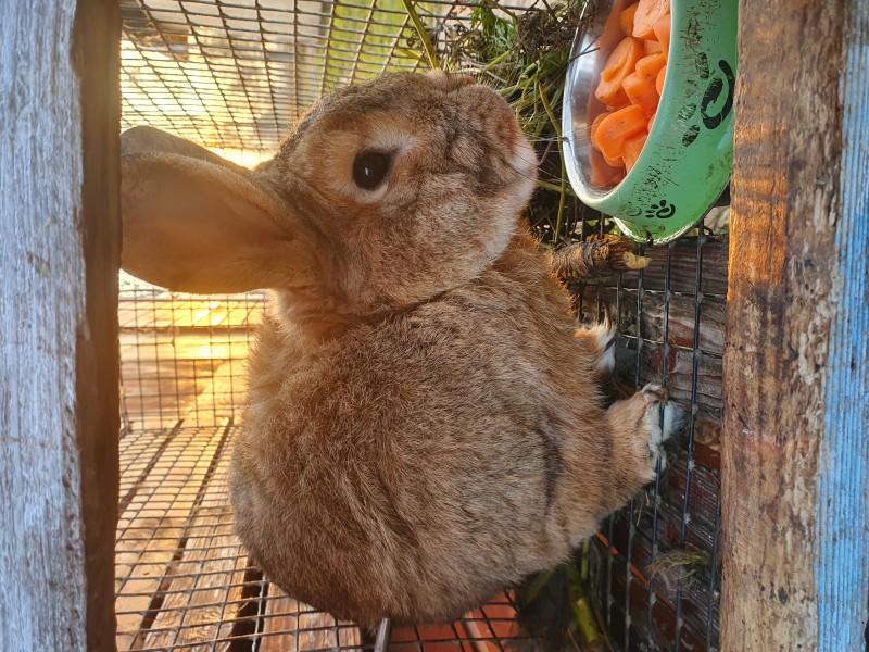 Bailīgs, dodas rokas, glaudīt kad baro, bet tikai būdiņā, vārdiņa nav, dzimums nav zinām, brūni/rudā krāsā voegli var sajaukt ar parasto zaķi. Pazuda 10.11. Rubeņu ceļā pie Langervaldes parka.