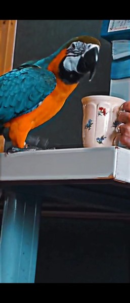 Mugura, spārni un aste ir zili no ārpuses. Vārds ir "Riko" ļoti runīgs ar skaļu balsi.