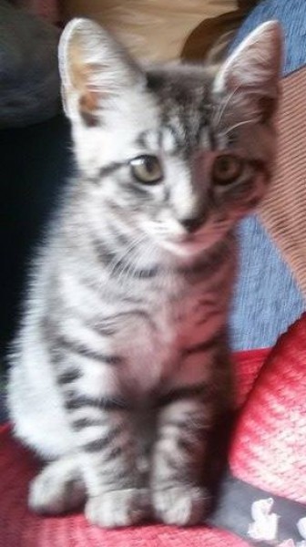Pazudis kaķēns (puika), 4-5 mēneši vecs, pelēks ar tumšām svītrām, skumjām acīm, siksniņas nav.